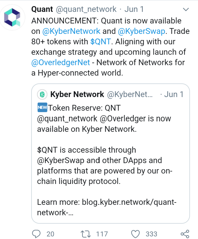 Qnt Crypto Partnership. My Opinion On Why QNT Will Be Massive - Hint, Hint it's partnered with Ripple and Hyperledger. This partnership between LACChain and Quant will use Overledger for established banking partners to benefit from an interoperable infrastructure for fast, easy cross-border payments and implementing.